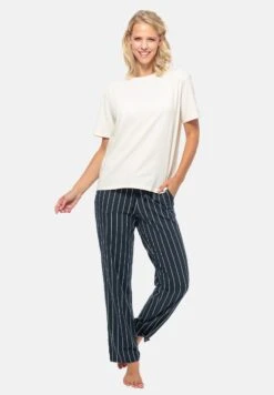 Schiesser Organic PigiamaBlau Gestreift Creme Donna Intimo Notte E Loungewear S5921T000-T11